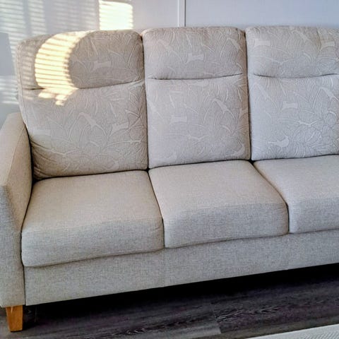 Pohjanmaan kalusteen sohva, Aria 3XL. Siistikuntoinen ja uudenveroinen, ostettu v. 2023. Väri vihertävä, tammi jalat.
