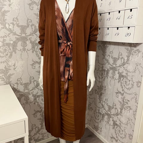 Iske Jacobsenin ihastuttava pitkä neulemekko. Ihanan pehmeä päällä. Käytetty vain muutaman kerran. Molemmissa sivuissa on 30 cm halkiot. Koko L. Pituus kainalosta kainaloon 50 cm ja pituus hartioista helmaan 1,2 M. Helma ulottuu reippaasti yli polvien.