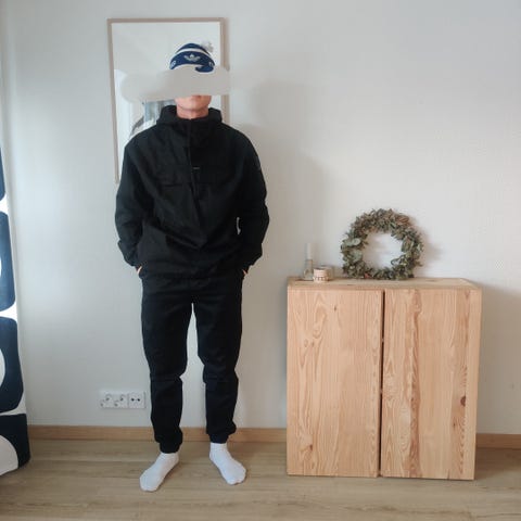 Hyvässä siistissä kunnossa. Ehjät ja puhtaat, ei voimakkaita tuoksuja. Kuvassa 180cm/76kg päällä. Rento unisex malli.