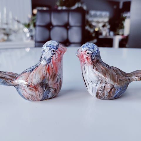 Myydään kuvassa olevat lasilinnut. Nokista murtuneet pienen pienet palaset kaikista. Muuten erinomaisessa kunnossa.