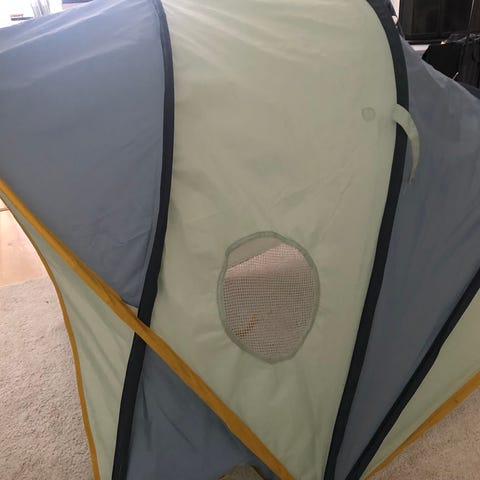 Annetaan lasten pöytä ja tuolit. Toisesta tuolista puuttuu istuinosa, meillä tilalla ollut kantoliina.