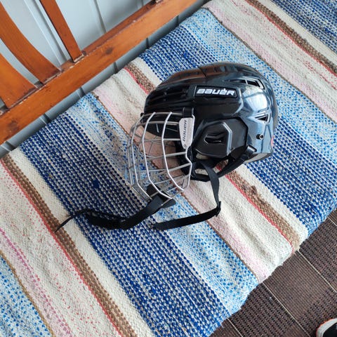 Kuvan mukainen Bauer kypärä + ristikko. Vain nouto.
