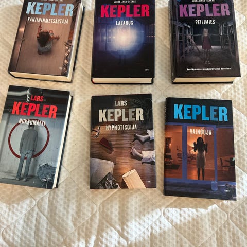 Myydään Lars Keplerin kirjat, nukkumatti ja vainooja. Yhdessä 10 euroa, erikseen 7 euroa/kpl