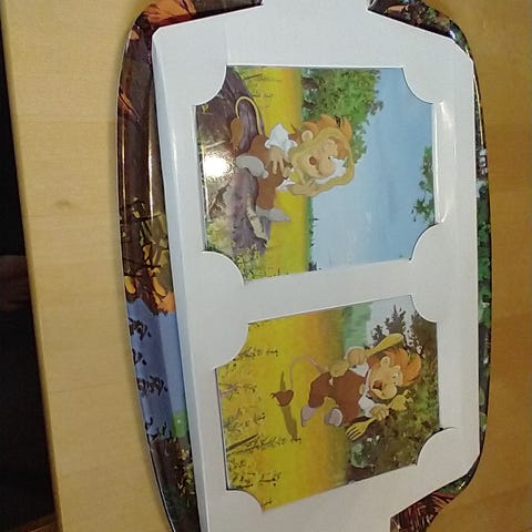 &Tradition Flora tarjotin ja lasinaluset kuvituksella. Tarjottimessa on värikäs maisemakuva, jossa näkyy kylä- ja luontonäkymä. Mukana on kaksi lasinalusta, joissa on sarjakuvamainen eläinhahmokuva. Tuotteet soveltuvat kattaukseen ja tarjoiluun sekä juomalasien alustoiksi. Materiaalina on kova, sileäpintainen levy, jonka taustassa on kohokuvioitu Flora-merkintä. Tarjotin kokoa 38×23 ja aluset 11.5×15 nouto tai postitus matkahuollon tai postin kautta hyvin pakattuna ei Toridiilinä
