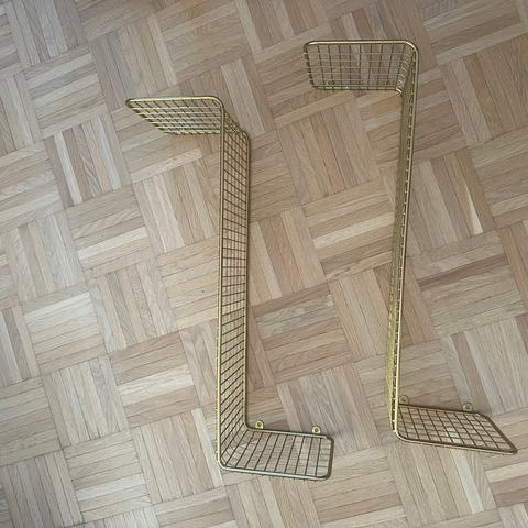 Myydään hyvässä kunnossa olevat Ikean Sandshult hyllyt ja kannattimet. Mukana myös kiinnitysruuvit.
