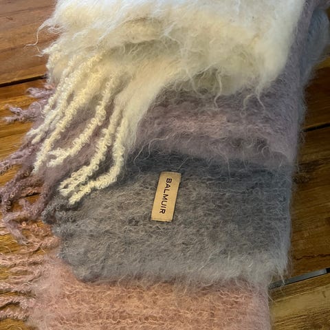 Uusi pakkauksessaan oleva Balmuir Aurora kid huivi. Väri taupe.