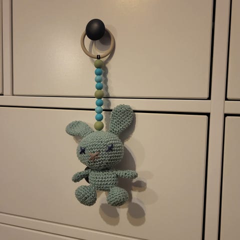 Virkattu pupu vaunu-/kaukalolelu, silikonihelmillä 🐰