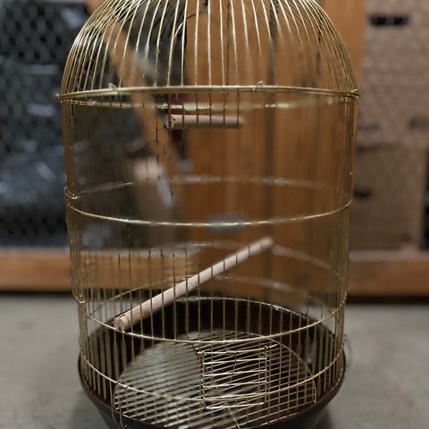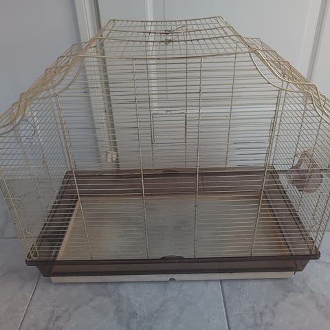 Linnuhäkki metallia muovisella pohjalla ja ruokinta-astioilla 60cm 40cm