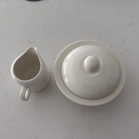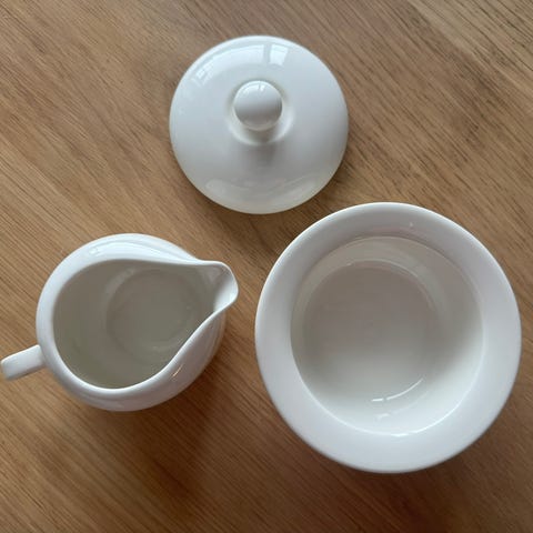 Valkoiset Arabia Arctica kermakko ja sokerikko. Erittäin vähäisellä käytöllä olleet.