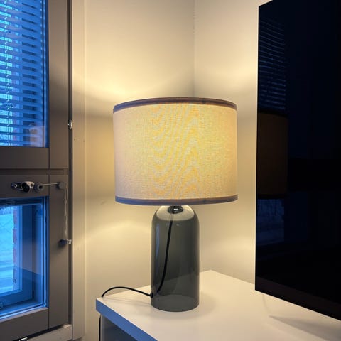 Käyttämätön pöytävalaisin. Ollut valaisinliikkeessä esillä. Varjostin muovissa/ luonnon valkoinen. Jalka eläväpintainen ja siinä ihan pieniä väripuutteita. Korkeus 41cm.