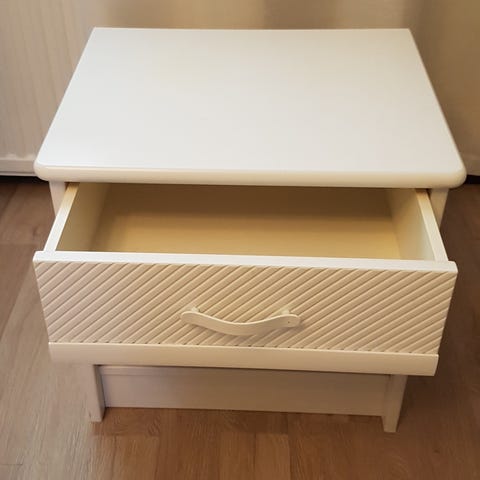 Myydään malm valkoinen yöpöytä lasikannella,todella hyvässä kunnossa,S 48,K 55, L 40,en varaile,käteiskauppa,asiointi suomeksi
