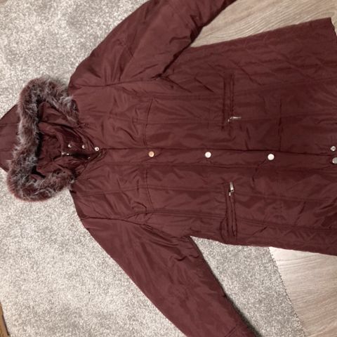 Punainen parkamallinen siisti ja ehjä toppatakki, kokoa 40, merkki Etirel.