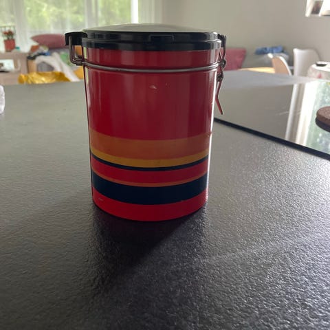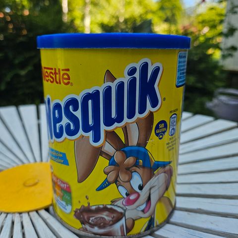 Vanha Nestle Nesquik peltinen säilytyspurkki keltainen
