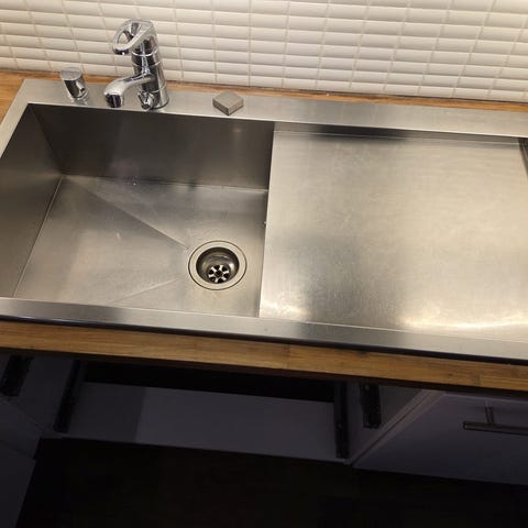 Oraksen hana ja metallinen Franke allas. Altaan ulkomitat 49x50 cm