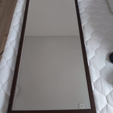 Kohtalaisessa kunnossa oleva peili. Kulumaa, näkyy kuvista. Täysin ehjä ja tukeva, melko painava. Saa seinälle kiinni takana olevista kiinnittimistä. Mitat 133 x 63 cm