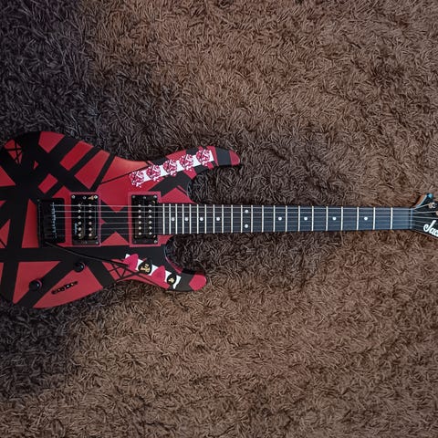 Myydään japanialainen Jackson Kelly Performer sähkökitara Floikalla. Kitara on valmistettu japanissa 80-90 -luvulla, jos sarjanumerossa mitään järkeä niin vuonna 1996. Aktiivimikit: kaulamikki alkuperäinen, tallaan vaihdetty EMG. Ikäänsä nähden hyvässä kunnossa, muutamia klaappeja mm. sakaroissa. Kaula hyvä ja suora. Väri on kiiltävä musta, katto heijastuu bodysta. D-drop-vireessä.