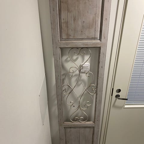 Metallinen seinäkoriste. Halk. 66 cm. Metallilankakuvion voi asettaa joko vaakaan tai pystyyn.