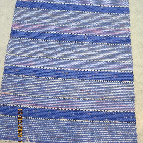 sinisen sävyinen raitoja eri muita värejä hieman.kude puuvillaa loimi 12säik.kalalankaa.Itse kudottu