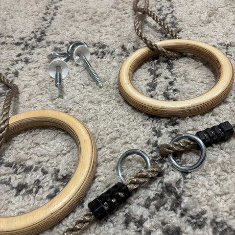 Puusta valmistetut voimistelurenkaat, joissa on kestävät köydet ja metalliset kiinnityskoukut. Sopivat esimerkiksi koti- tai ulkoliikuntaan, leikkeihin ja kehonpainoharjoitteluun. Köysien pituutta voi säätää kiinnityskohdan mukaan. Soveltuvat sekä lapsille että aikuisille käyttäjän painorajat ja kiinnityksen kestävyys huomioiden.