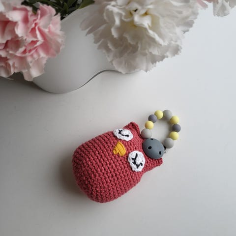 Virkattu pöllö vaunu-/kaukalolelu, silikonihelmillä 🦉
