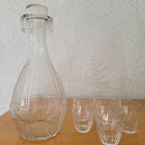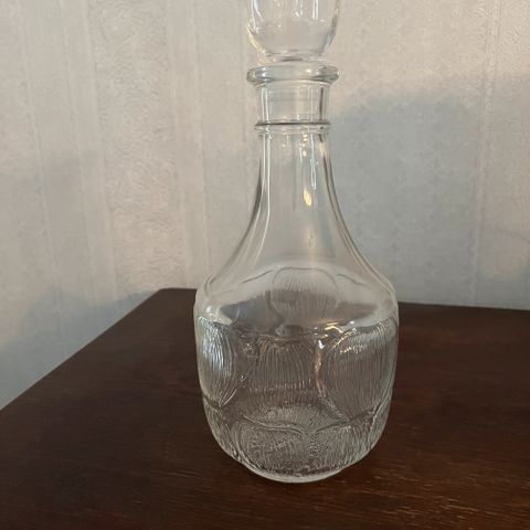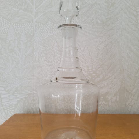 Lasinen karahvi korkeus 22 cm, leveys 9 cm