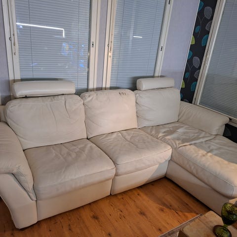 Hieno divaanisohva, 1-2 istuttava, paksua tummanruskeaa nahkaa. Mukava pötkötellä ja helppo pitää puhtaana.