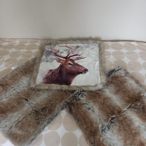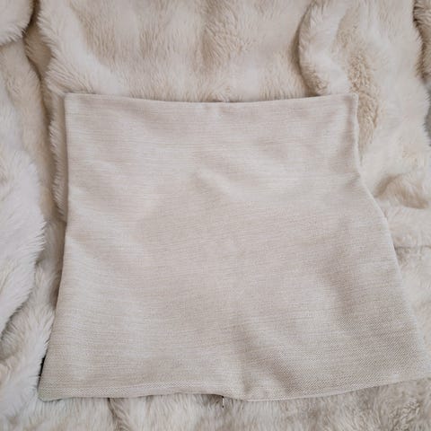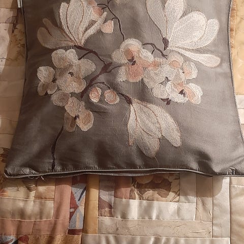 Tyynynpäällinen. Materiaali silkkiå konekirjottu. Vetoketjullinen.