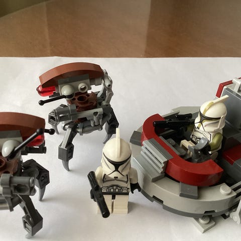 Kerran koottu Lego Star Wars Droideka, 583 palaa. Kaikki palat tallessa ja ehjiä, pussitettu kokoamisohjeen mukaisesti. Mukana myös ehjä ohjekirja.
