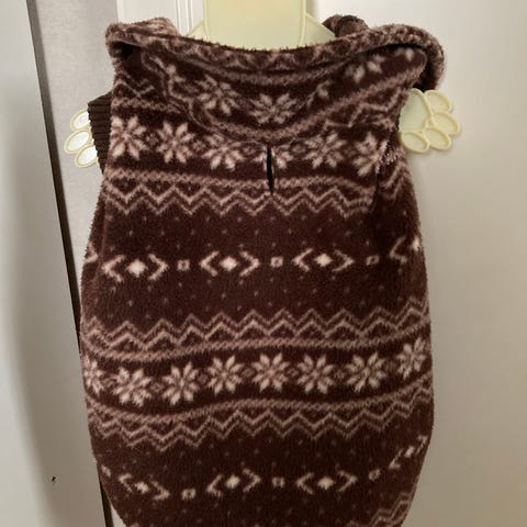 Ohkaisempi neule. Sopii lisälämmöksi vaikka takin alle. Pinta hieman nyppyyntynyt valjaiden alla. Ehjä ja siisti kuntoinen paita.