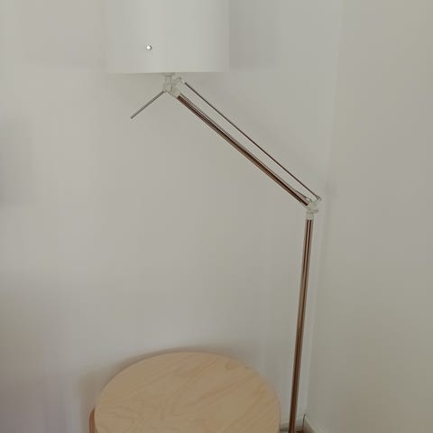 Myydään Ikean paperinen jalkalamppu. Korkeus n. 157cm, halkaisija alhaalla n. 32cm. Sisällä paikat kolmelle lampulle.