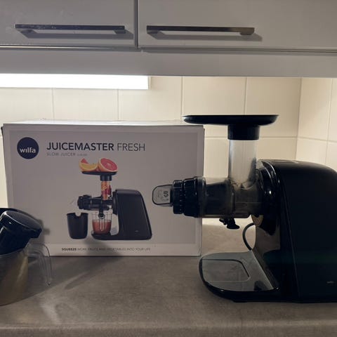 Wilfa mehustin keittiökäyttöön. Laitteessa on pystymallinen runko ja erillinen mehustusosa, jossa on syöttöputki ja mehuhana. Mukana tulee läpinäkyviä astioita mehun ja hedelmälihan keräämiseen sekä puhdistusharja. Soveltuu hedelmien ja vihannesten mehustamiseen kotikäytössä. Väri musta, materiaaleina metalli- ja muoviosat. Vähän käytetty, ei takuuta tai kuittia. Ostettu 2020.