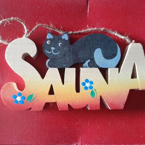 Saunatonttu kyltti.