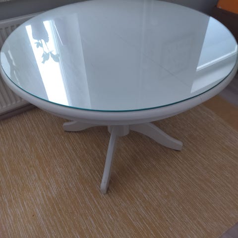 Myydään aikoinaan huonekaluliike Räisäsestä ostettu kuuden hengen ruokailupöytä joka on noin viisi vuotta sitten hiottu ja vahattu valkoiseksi ja teetätetty karkaistu optiwhite (irto)lasi pöydän päälle. Pöydän puukannessa pieni halkeama, mutta lasi hyvässä kunnossa.