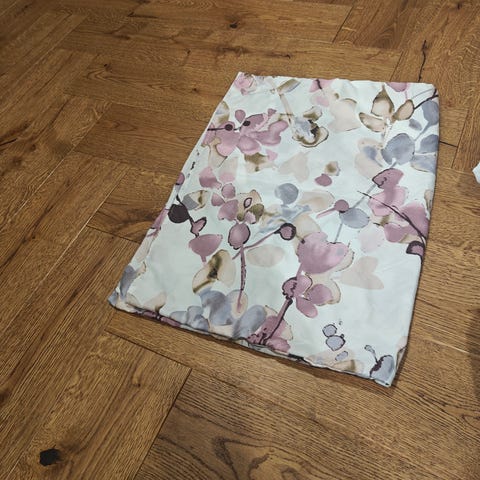 Pientä kulumaa kulmissa ylhäällä kohta aukko sivussa katso kuva. Reunoissa hieman panautumaa mankelin jälkeen.