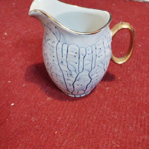 Vielä ihan hyväkuntoiset Kermansaven kermakko ja tarjotin. Itselle jääneet tarpeettomiksi. Tarjottimen koko n. 24,5cm x 35 cm.