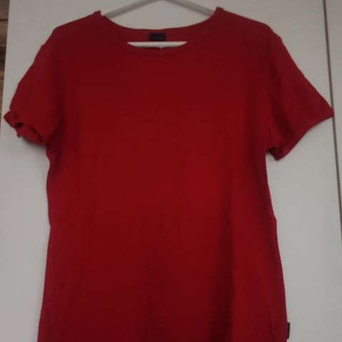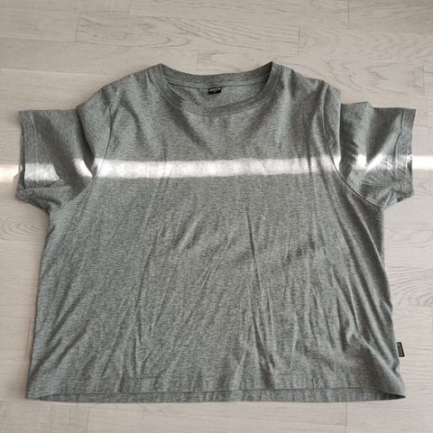 Hyväkuntoinen t-paita 95% joustavaa luomupuuvillaa ja 5% elastaania. Väriksi sanoisin tummahko laventeli, ametisti tai vispipuuro. Väri kuvissa kirkkaampi, luonnossa hailakampi. Mitat: olka-helma n. 67cm, kai-kai n. 60cm. Helmassa pienet sivuhalkiot. Nouto Niipperistä tai postitus, jolloin ostajalle kulut.