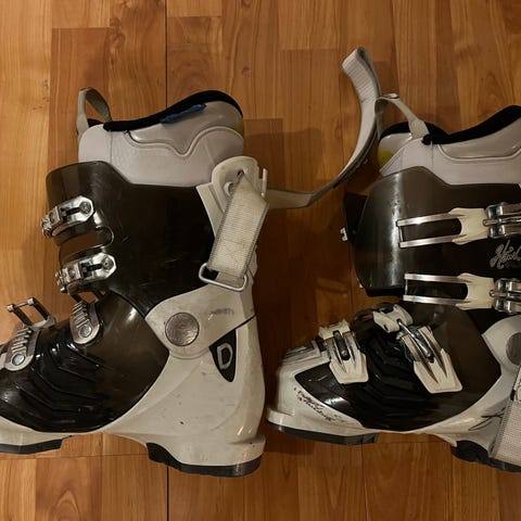 Atomic Live Fit Sport naisten laskettelumonot. Kengän koko on 23–23,5, pohjan pituus 279 mm. Väri on valkoinen ja musta hopeansävyisillä soljilla. Monossa on neljä säädettävää solkea ja leveä tarrakiristys varressa. Soveltuu alppihiihtoon ja rinteessä laskemiseen.
