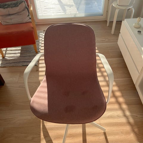 Vähällä käytöllä ollut långfjäll toimistotuoli. Vihertävänharmaa kangas, korkeus säädettävissä 42-52cm, keinutoiminto vastussäädöllä. Korkeampi selkänoja
