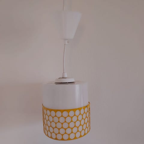 Valkoinen siisti kattolamppu. Ostettu Carlsonilta. Lamppu ei ole Hayn merkkinen . En saa muutettua tietoa .