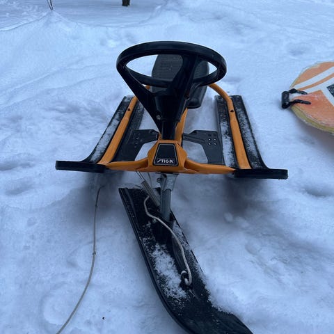 Myydään hyväkuntoinen Stiga Rattikelkka. Suojamuovissa halkeama, mutta suojus voidaan poistaa. Ei haittaa kelkkailua