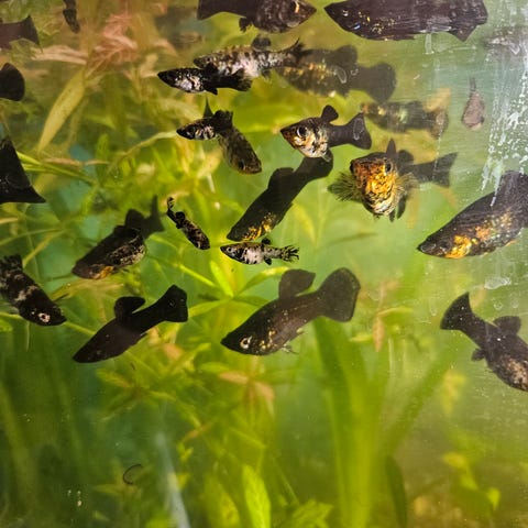 Myynnissä viime vuonna syksyllä kuoriutuneita miayzakura poikasia. Nämä näyttävät paremmalta ulkoaltaassa. Kun ne saavat aurinkovaloa niiden väri loistaa vielä paremmin.