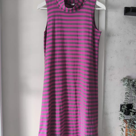 Vihreä, pitkähihainen malli, jossa V-pääntie, nappikiinnitys. Voi käyttää vyöllä tai ilman.