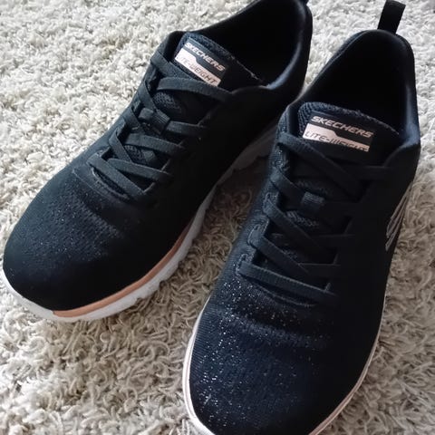 Skechers D’Lites lenkkarit, koko 37. Väriltään pääosin valkoiset, joissa monivärisiä yksityiskohtia. Päällinen nahkaa ja synteettistä materiaalia, nauhakiinnitys. Paksu vaimennettu pohja ja Air-Cooled Memory Foam -sisäpohja. Käyttämättömät, sisäm.24cm.