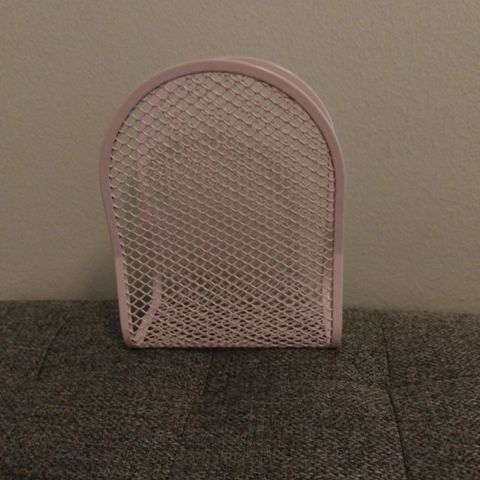 Pieni teline esim lehtien säilytykseen. Väliseinä repsottaa.
