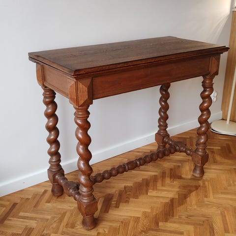 Jykevässä ja hyvässä kunnossa oleva työpöytä, joka ei nitise eikä natise ja kestää vaikka pöydällä seisomisen hetkellisesti. Pöytälevy saanut vuosien aikana käytön jälkiä, joten pintakäsittelyn vaatii, jos haluaa näyttävämmän pinnan. Tämä on ollut aikoinaan työpöytänä Työväen arkistossa. Kuljetusta varten laatikostot saa irrotettua.