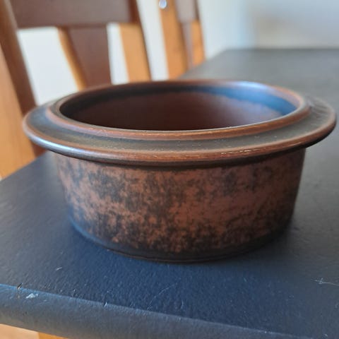 Ulla Procopén Arabialle suunnittelemaa Ruska-sarjaa. Sarjaan tyypillisesti astiassa on ruskean eri sävyjä ja lasitteessa elävä pinta. Pohjassa ei leimaa.