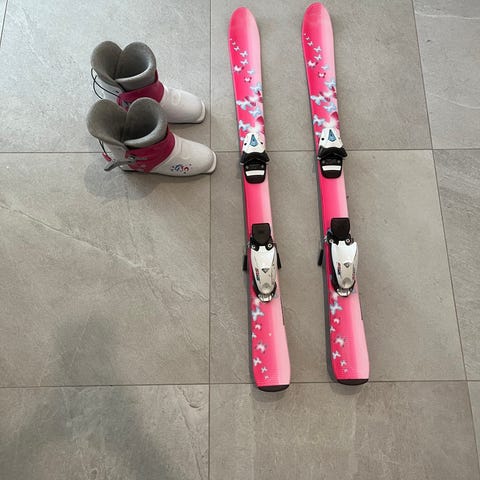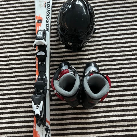 Rossignol lasten laskettelusukset ja Head monot. Suksien pituus 130cm ja monot koko 36.