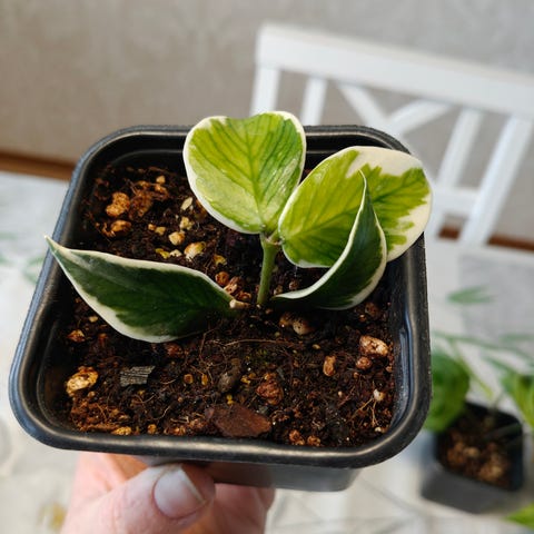 Eksoottinen posliinikukan alku. Hyvät juuret. Kukinto keltainen.