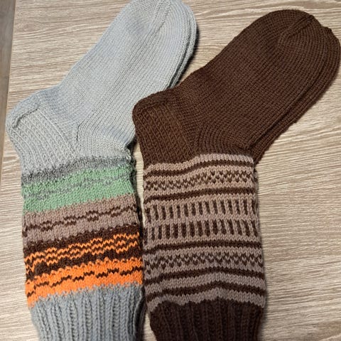 Lämpimät villasukat, käsin kudotut. 75 villaa ja 25 polyamidia. Hinta 20 € pari. Käteinen tai mobilepay. Nouto Kivakadulta tai postitus.