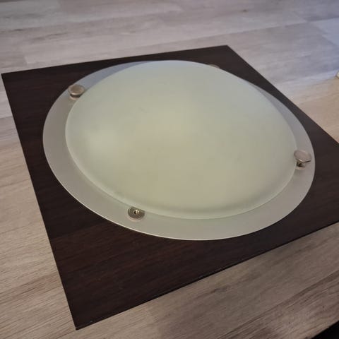 Myydään hyvässä kunnossa oleva plafondi, kuvun halkaisija n. 50cm. Kupu on lasia ja muu metallia. Hyvä yleisvalo!